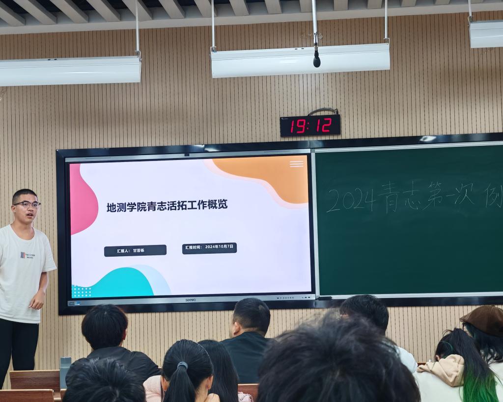 会议伊始,青志队执行主席刘丽娜上台发言,她首先对加入青志队的新成员们表示欢迎,随后从青志队的组成架构、往年荣誉以及未来展望三方面进行了简要介绍,最后她也对青志队的成员们提出了希望,希望所有人发扬不怕犯错、不怕困难的精神,具备“多思考,多复盘;有问题,就指出”的能力,以青志队为平台,遇见更好的自己。