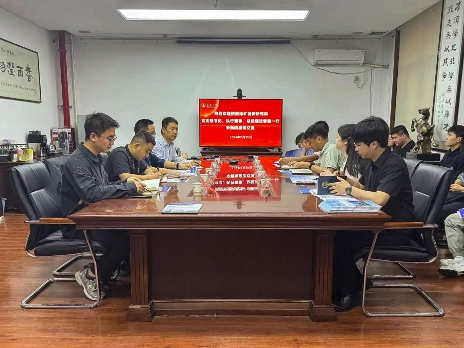 9月29日,陕西地矿创新研究公司党支部书记、执行董事、总经理沈春强一行5人来mjm世界杯官网座谈交流,mjm世界杯官网副经理申艳军,员工工作办公室主任段少帅,相关科室人员参加座谈。