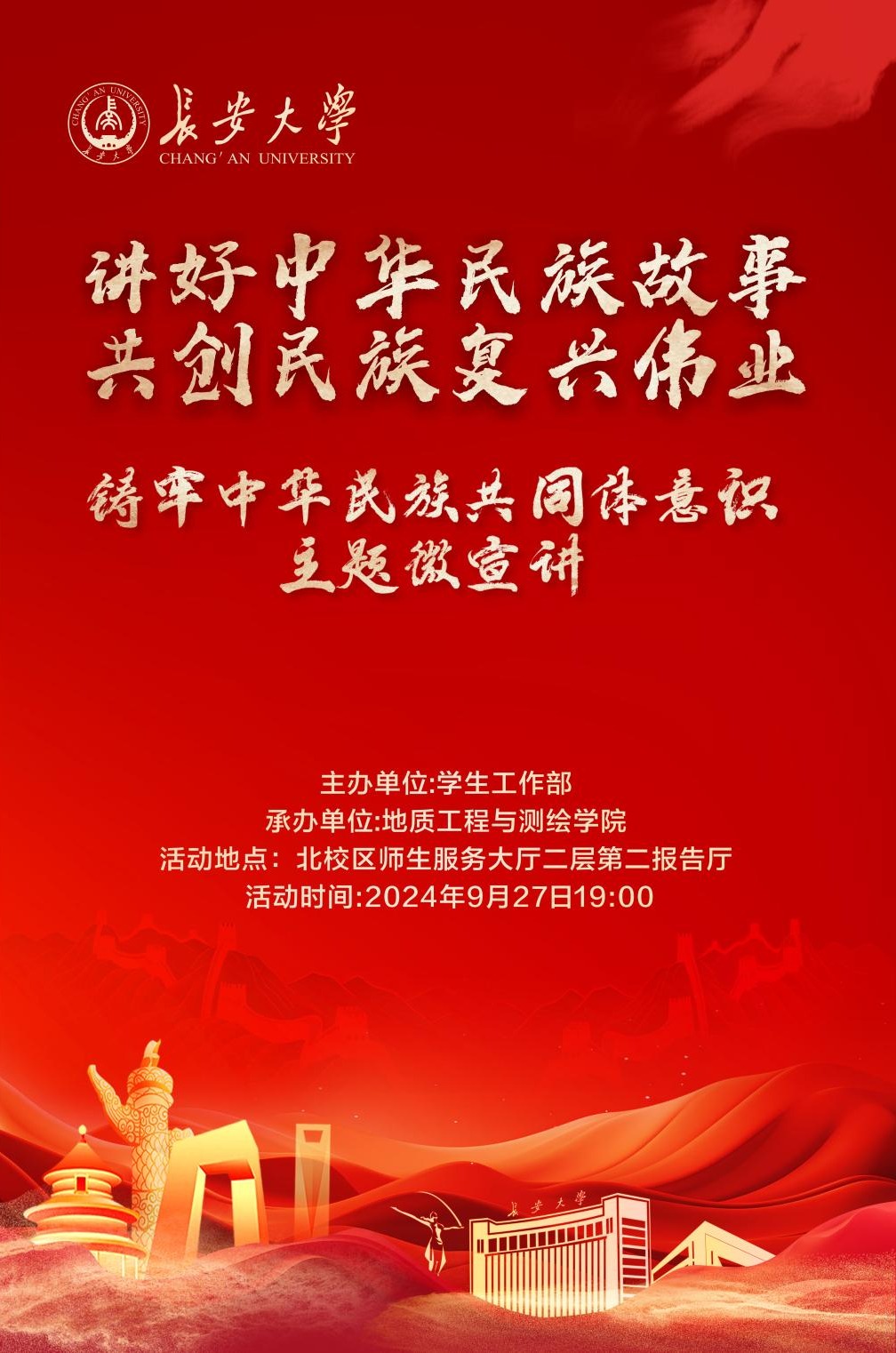 为深入贯彻落实党的二十大和二十届二中、三中全会精神,深入学习贯彻习近平总书记关于加强和改进民族工作的重要思想,教育引导各族青年员工讲好中华民族故事,牢固树立正确的中华民族历史观,牢固树立休戚与共、荣辱与共、生死与共、命运与共的共同体理念,根据陕西省民宗委《关于举办第二届陕西省高校老员工铸牢中华民族共同体意识主题微宣讲比赛的通知》,在前期公司推荐、复赛评审的基础上,9月27日将举办公司“铸牢中华民族共同体意识主题微宣讲”校内选拔赛决赛。