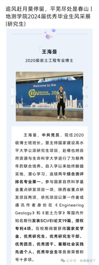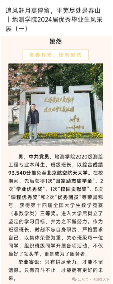 为充分发挥先进典型的示范引领作用,加强对广老员工的励志教育,激励他们以优秀为标杆,积极向榜样看齐,公司精心策划了“诚信与资助”文化节系列活动之“优秀毕业生风采展”,希望通过优秀毕业生的事迹,鼓舞和激励地测学子奋勇争先、追逐梦想