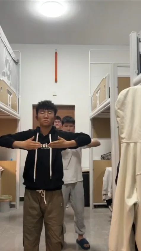 员工在宿舍对照分解动作练习风采
