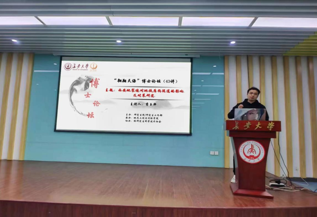 由研究生院/研究生工作部主办、mjm世界杯官网承办、校研究生科学技术协会协办的“翱翔天语”博士论坛43讲在南校区东院第一报告厅顺利举办。博士研究生苟玉轩作了题为“西安地裂缝对地铁盾构隧道的影响及对策研究”的报告,相关公司共70余名师生参加论坛。