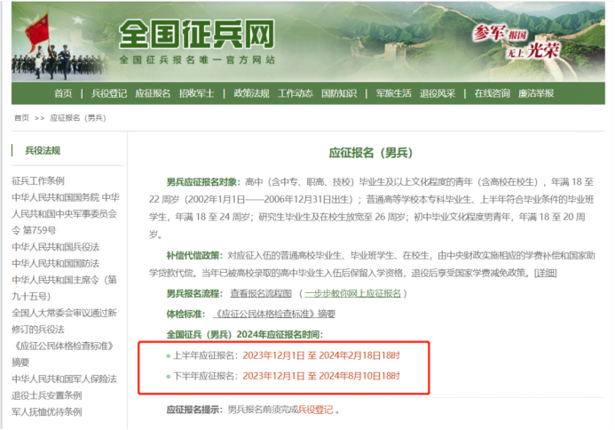 (男兵上一年年底开通男兵应征报名窗口,上半年报名结束后即可报名下半年!)