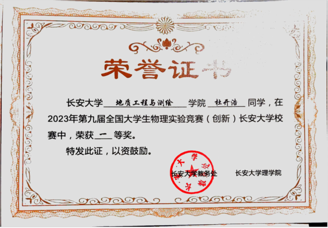 除了专业知识学习外,还注意各方面知识扩展,广泛参与科研竞赛,提高自己的学术能力,主持省级大创项目一项。获得美加墨世界杯官网数学建模一等奖、第一届西北赛区物理实验竞赛省级二等奖等各类比赛奖项。
