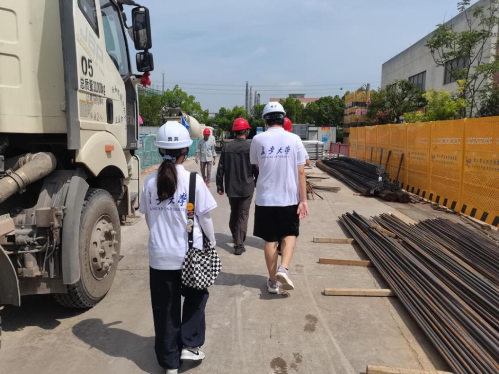 实践队在核金建设集团组织(人力资源)部副部长李嘉带领下参观了公司市政工程项目,实践队师生通过与生产项目部一线工作人员面对面交流,对于专业工程实践,就业方向以及今后的工作环境等有了进一步的了解。