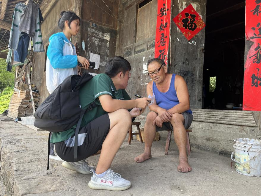 上午,实践队员深入苗寨,通过问卷调查和面对面访谈,与家长、员工探讨了普通话在家庭、公司和社区中的使用频率和方式,聆听了居民对普通话推广的期望和需求,了解了他们在普通话学习过程中遇到的困难和挑战。