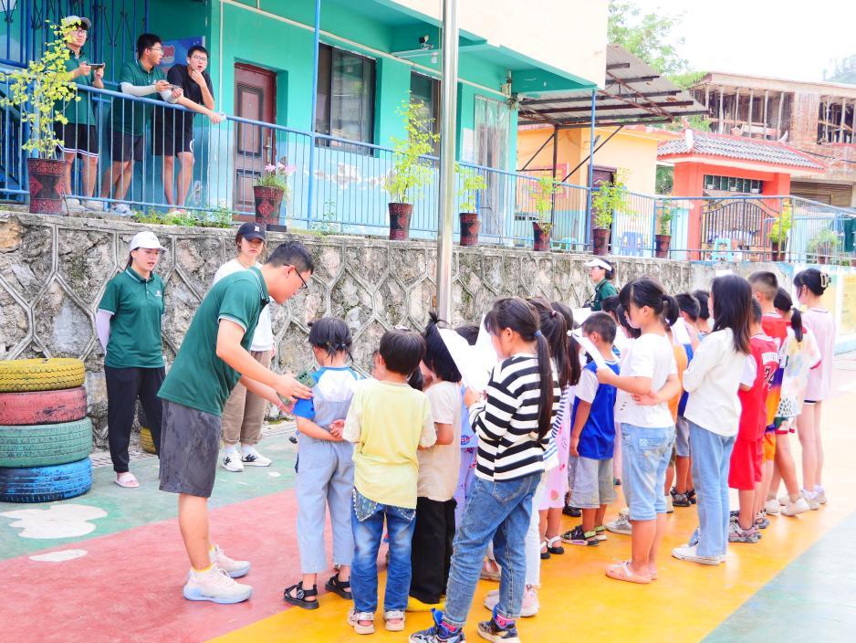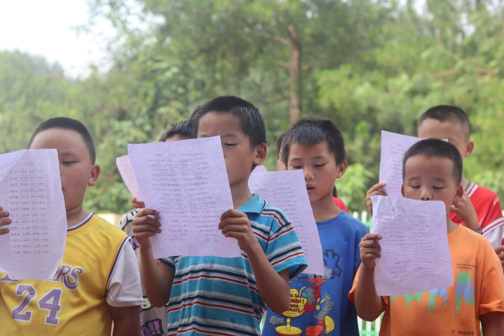 南江小学员工以一、二年级为主,在校人数不足二十人,员工普通话规范程度普遍不高。因此,根据员工的年龄分布,实践队员提前制定了教学方案,确定将《三字经》和《弟子规》作为主要诵读内容,朗朗上口且具教育意义。另外,实践队员推荐经典名篇,讲述传统故事,开展了诗歌朗诵、普通话比赛等活动,与孩子们学唱了歌曲《送别》《国家》以及《共产主义接班人》。通过诵读爱国诗歌、名家名篇引导儿童热爱中华文化、增强文化自信、培养爱国情怀,在寓教于乐中引导农村少年儿童阅读中华传统经典、红色经典和当代经典阅读,在阅读中增强热爱中华文化的自觉、增强文化自信,铸牢中华民族共同体意识。