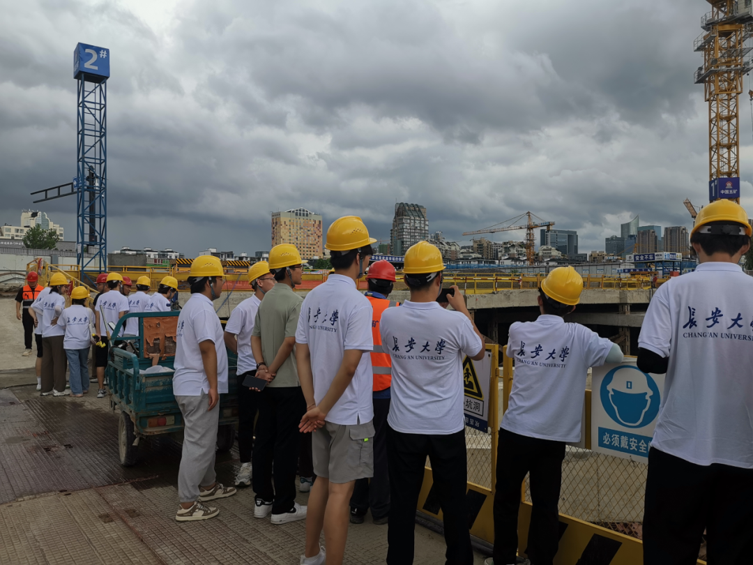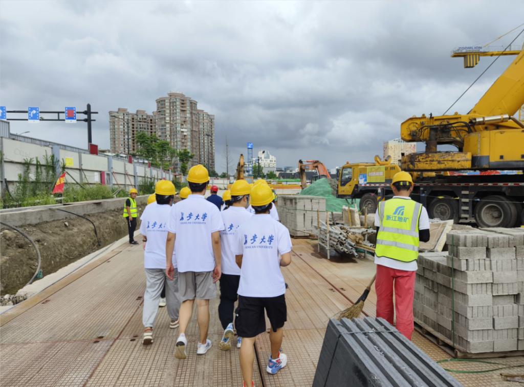 在项目介绍结束后,陈向副总、吕工程师带领实践队员来到项目工地,为实践队成员讲解了本次项目中几个坑位的施工内容,介绍了一些大型工程设备,回答了实践队员的各种问题。在参观中,陈向副总着重介绍了源泰楼的迁移问题。将这个历史建筑支撑后顶起平移36米,原址施工完成后移回原位。简单的步骤后蕴含着繁琐的工程问题。这次参观工地,对于实践队员而言是难得的,亲身感受工程的施工内容,是前所未有的。“纸上得来终觉浅,绝知此事要躬行”这句话是对实践队员的最好描写。大家在参观中,将所学知识与所见工程映照起来,加深了对专业内容的认识。