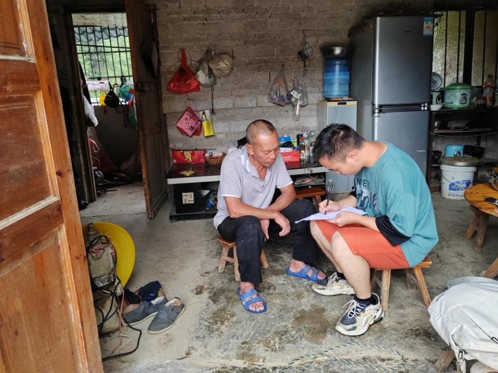 实践队员帮助村民填写推普问卷