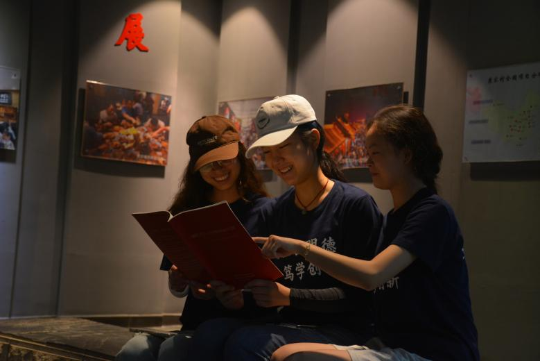 图 4实践队员阅读《创新与共享——袁家村的振兴之路》一书