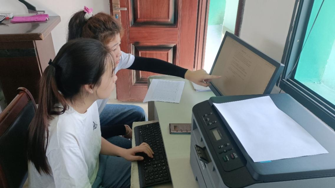 上午8时30分,部分实践队员开始进行招生宣传单、招生表以及安全责任书的编写和打印工作。