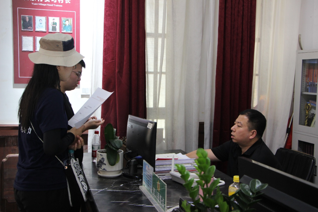 2023年7月17日上午,实践队在前期对袁家村进行了比较充分的调研后,走进袁家村村主任接待室与村委会工作人员进行了简短的交谈。首先,工作人员对此次实践活动表示了充分的肯定,认为实践队表现出良好的团队合作精神,走入乡村前沿,切实体悟乡村振兴内涵,体现了当代老员工为乡村振兴事业不怕困难、甘于奉献的良好品质。实践队也对村委会在实践活动中提供的帮助表示感谢并祝愿袁家村发展得越来越好。