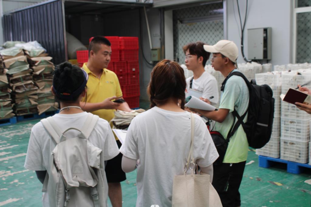 在青创联盟,实践队员们首先在工作人员的带领下参观了米脂县陕西省青创联盟电子商务有限公司的物流中心。物流中心内,不同包装的小米、杂粮、果干等农产品被有序的分放在不同的区域内,各种包装技术一应俱全,工作人员也在有条不紊地进行包装、转运工作。在工作人员的讲解下,实践队员们依次了解了产品包装、原料收购、销售渠道企业合作等方面的内容,对青创联盟通过电商助力乡村振兴及精准扶贫的模式有了更深入的了解。