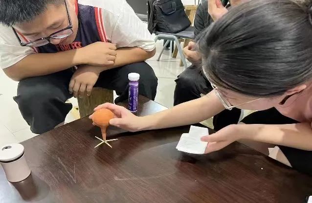 实践队队员提前演练了实践内容“水的趣味实验”。在“会动的牙签”这一有关水的表面张力的实验中,队员们将牙签进行了不同程度的折断重复操作,以获得更好的展示效果;在进行“悬浮在水面的鸡蛋”这一有关水的密度的实验时,队员们遇到了困难——鸡蛋老是浮不起来。经过多次更换容器、调整盐水比例后,沉在水底的鸡蛋终于浮了起来!队员们发出了激动的欢呼!