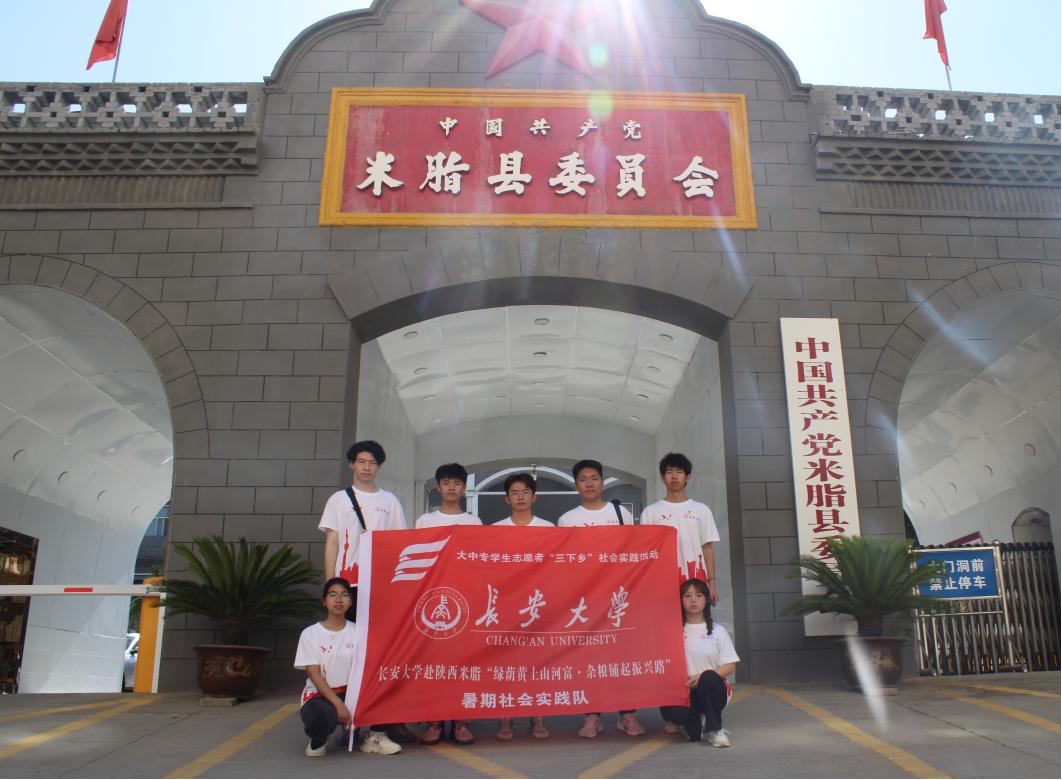 图为实践队队员在米脂县委员会门口合照