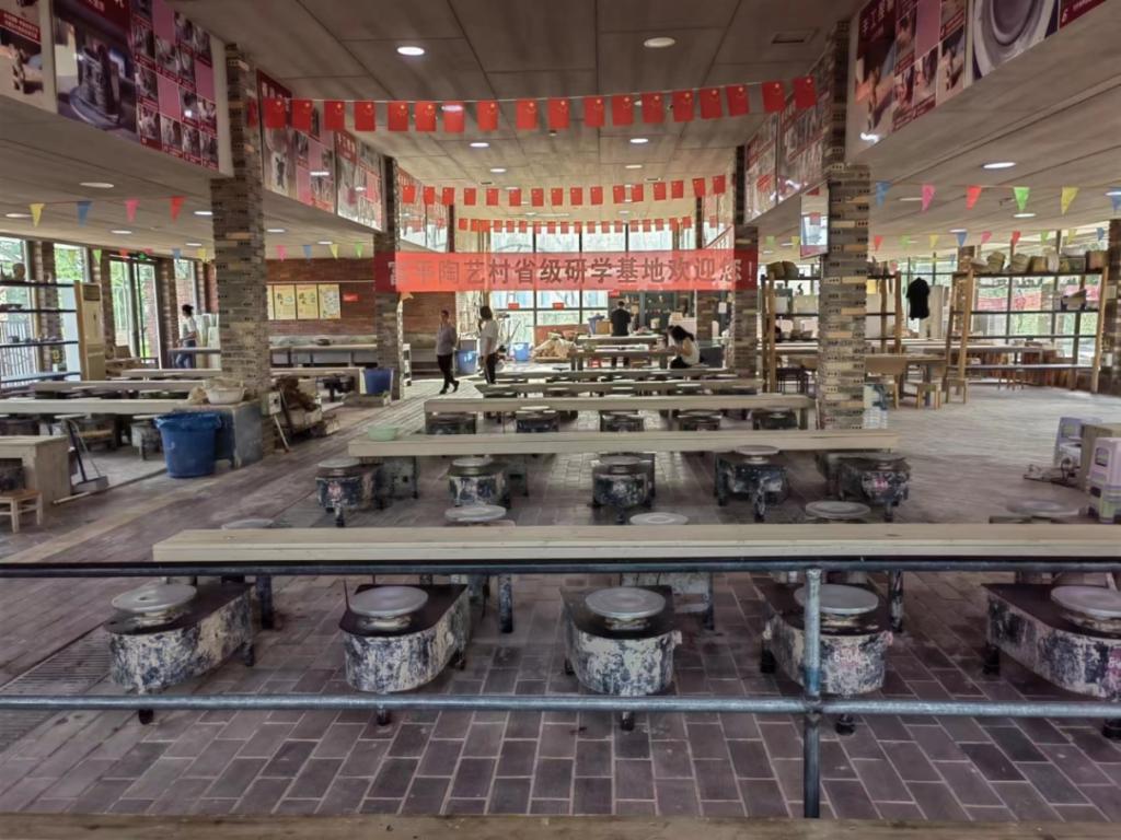 实践队员走进富平陶艺村省级研学基地,探访陶艺的制作过程。陶艺,广泛讲是中国传统古老文化与现代艺术结合的艺术形式,从历史的发展可知,“陶瓷艺术”是一门综合艺术,经历了一个复杂而漫长的文化积淀历程,它与绘画、雕塑、设计、以及其他工艺美术等有着无法割舍的传承与比照关系。现代陶艺的创作主要通过作品的造型,材料,肌理,纹饰,釉色来表达作者的意念,满足现代人回归自然,体现自我个性的要求,陶艺并列于绘画,雕塑等造型艺术行列之中。陶艺主要制作方法有拉坯成型、泥板成型、泥塑成型、泥条盘筑、捏塑等等。从练泥开始,盘余,泥扳,捏塑,拉坯等技法的应用,一件件陶艺被制作出来。