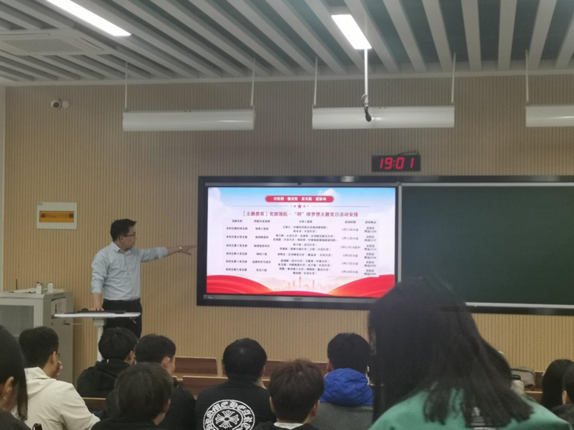 5月9日晚19:00,美加墨世界杯官网mjm世界杯官网本科生第七党支部“党旗领航·‘研’续梦想”主题党日活动在修远2206教室举行。此次活动邀请了党支部书记苗行生老师为我们解读保研政策,同时也邀请了李明杰同学、解孟泽同学和王润涵同学来为我们分享他们保研和考研的相关知识和宝贵经验。