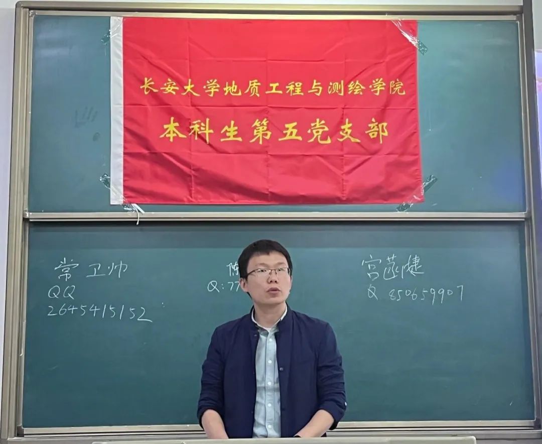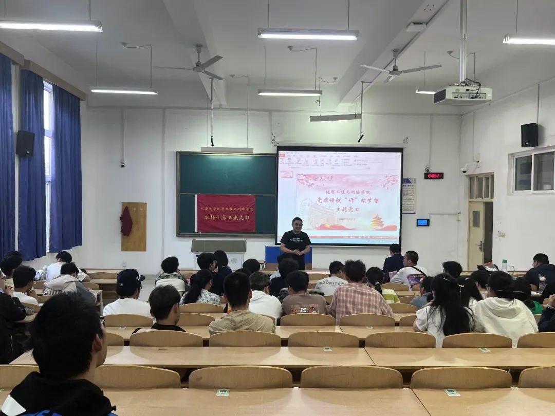 5月11日,美加墨世界杯官网mjm世界杯官网本科生第五党支部于WH2107教室组织开展“党旗领航,‘研’续梦想”主题党日活动,支部全体党员、思政班主任邓煜和部分低年级本科生共同参与此次活动。活动由支部书记杨海城主持。