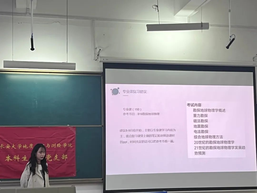 活动伊始,杨海城老师向参会人员介绍了此次活动的主要内容和意义,随后,由2019级本科生宫菡婕、陈炫博、常卫帅三位同学分享自己的升学规划及经验。首先,宫菡婕同学表示,考研的关键在于平时的积累和学习态度。在分享中,她详细讲述了四门考试科目的复习顺序以及复习方法,同时,建议同学们在平时的学习中注重知识的深入理解和掌握,多进行思考和总结。