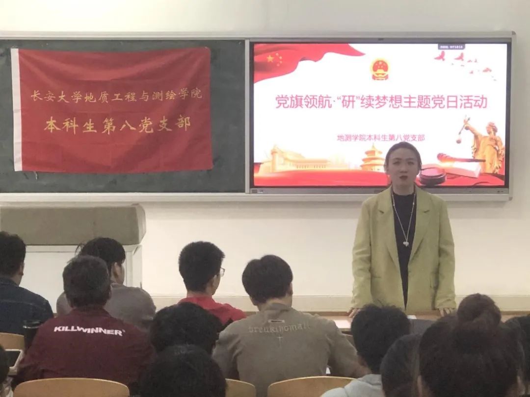 活动伊始,党委副书记潘迎介绍了此次主题党日活动的渊源、筹备和意义,并重点针对目前全党开展的主题教育进行了动员、安排与部署。随后,支部毕业生党员赵海峰、王智博、徐玉涵和边子策进行保研和考研经验分享。