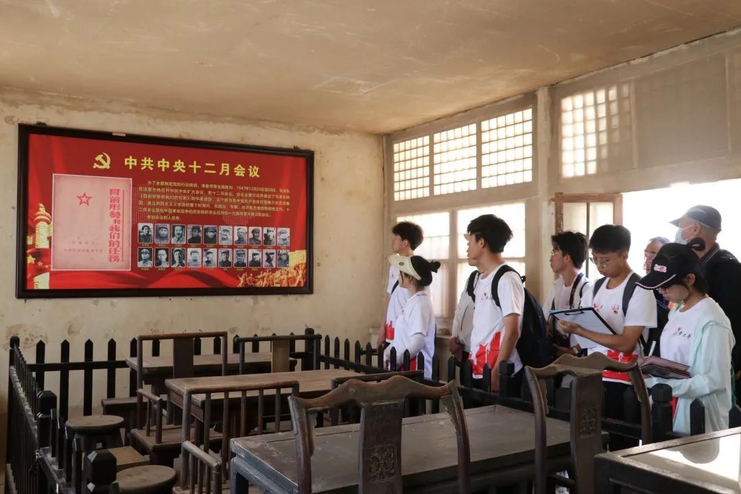 上午9时,实践队成员来到杨家沟革命旧址探寻米脂县红色精神的气息。在此,实践队员学习到了“十二月会议”的重要意义,了解了杨家沟在中共党史和中国革命史上的重要地位。在讲解员的引领下,实践队队员依次走过“十二月会议”旧址、主要参会人员住处及毛泽东主席等主要领导人的住址——新院,了解到十二月会议是在中国革命战争的历史转折关头召开的一次具有重大意义的会议。此次会议所制定的政治、经济纲领比《新民主主义论》和《论联合政府》中提出的纲领有了进一步的发展。更为难得的是,在毛泽东主席的塑像下,实践队成员遇到了五位来自延安的新中国第一代讲解员,在与他们的交流中,实践队成员们更加真切地感受到了老一辈革命人对祖国赤诚的爱,对红色文化有了更进一步的感悟。