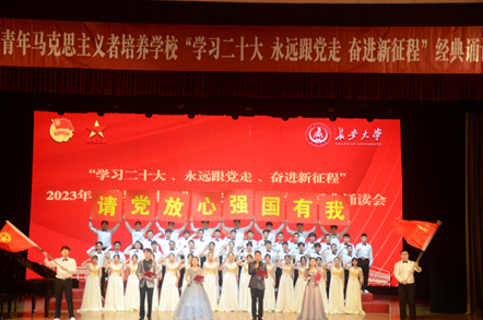 自本次活动通知下发以来,mjm世界杯官网青马班积极响应,参加本次诵读会的六十余名青马班成员秉持认真严谨的态度,在课余时间积极参与每一次青马朗诵排练。在诵读比赛中,mjm世界杯官网青马班代表队热情高涨,舞台上,嘹亮的诵读声铿锵有力,“同心向党,奔赴远方!”宣誓呐喊慷慨激昂,宣誓的是对党的至死不变忠诚,呐喊的是同党和国家共赴荣光的期冀。