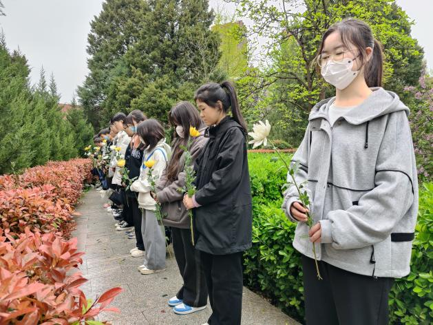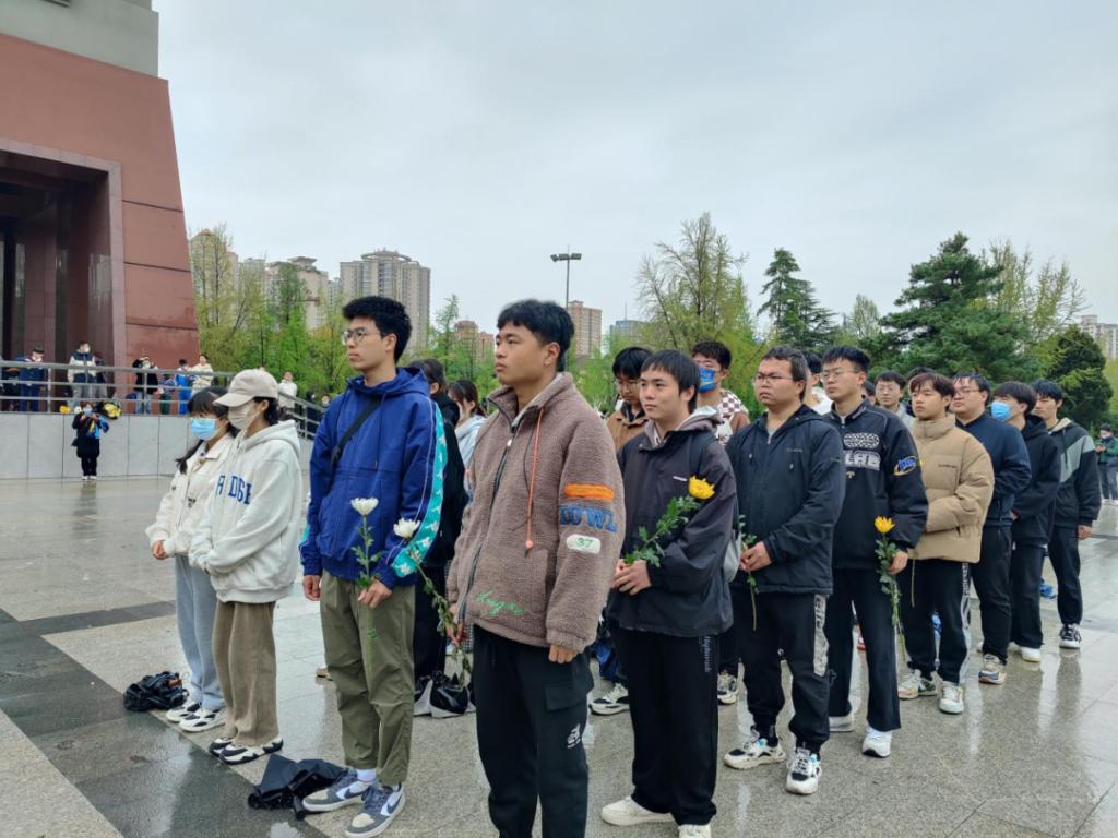 活动在庄严肃穆的西安烈士陵园进行,702班班主任侯亚楠及29名同学集体默哀致敬,沉痛悼念长眠于此的英雄。