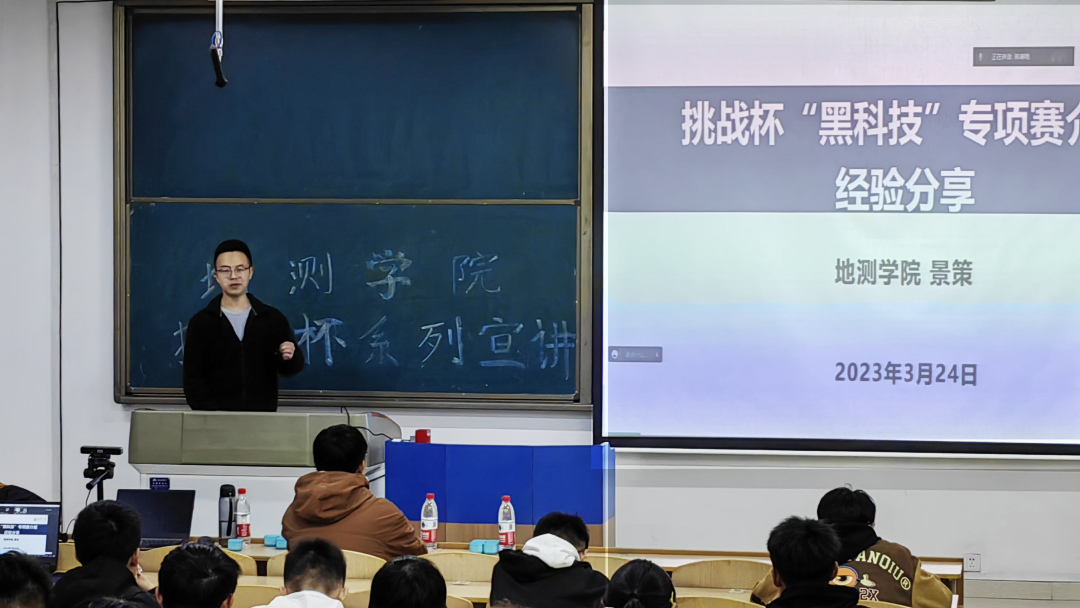 为了让同学们更好地了解挑战杯系列赛事的竞赛流程,做好赛前准备,同时调动同学们参加科创比赛的积极性,地测科协于2023年3月24日19:00在WH1203教室开展了mjm世界杯官网“挑战杯”赛事系列交流会。mjm世界杯官网团委书记苗行生、科协指导教师马见青出席了交流会,本次交流会邀请了公路公司红色专项国赛三等奖团队负责人曹昱杰、mjm世界杯官网挑战杯黑科技国赛“星系”级团队负责人景策、mjm世界杯官网红色专项省赛二等奖团队负责人王鹏起前来分享经验。交流会由mjm世界杯官网科协吴欣芮、吴奕凡主持。