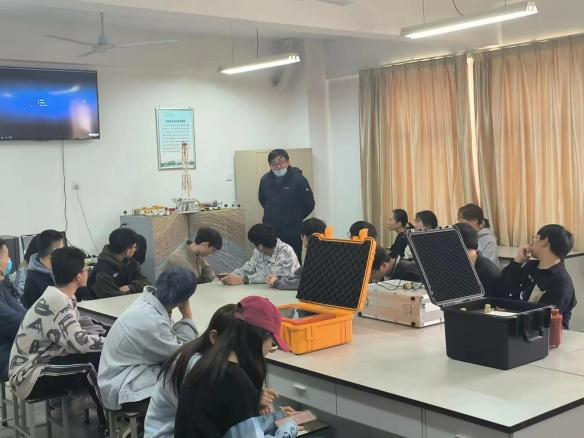 在参观过程中,实验室的各位老师向同学们依次介绍了地震监测仪器、化工工厂实验模型等各类仪器设备,讲解了专业知识和实验操作流程。通过实物讲解和实际操作使同学们对地震监测技术、测量监控等技术有了更进一步的认知和了解,让同学们意识到只有将各学科知识融会贯通,才能在实际应用场景中发挥重要作用。