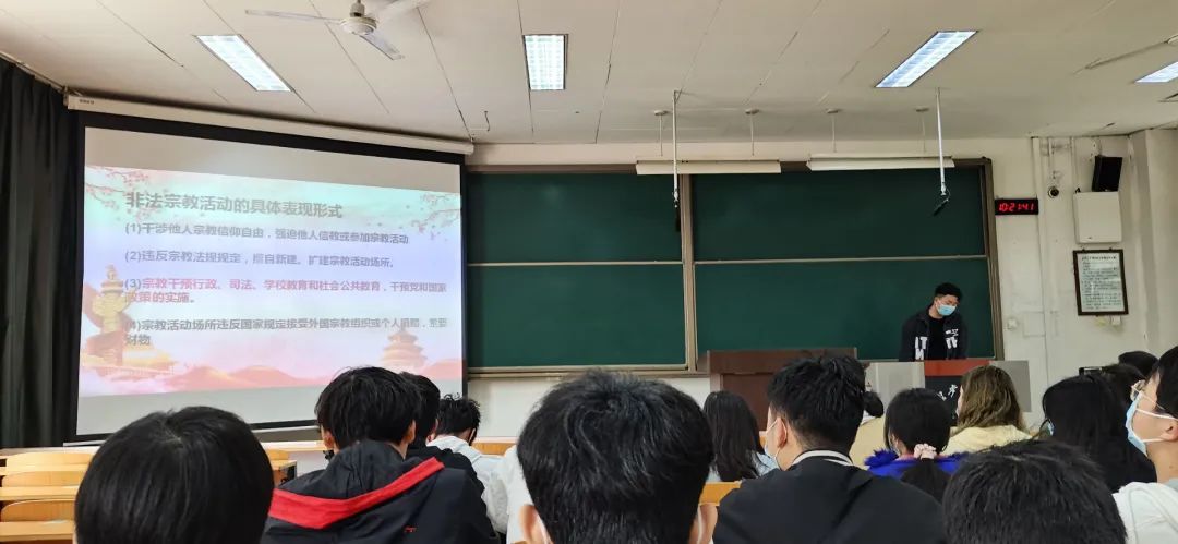 其次团支书魏旭博表示:作为新时代青年,应树立正确宗教观,坚决抵制一切校园宗教活动,努力学习科学知识充实自己,勇于担当历史使命,坚定前进信心,让青春在奋斗中绽放绚丽之花。