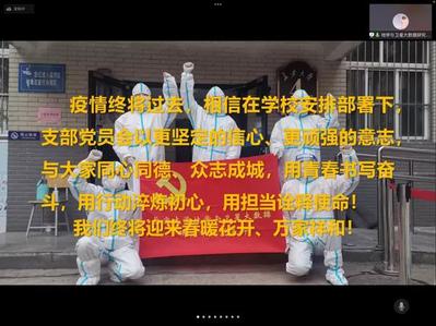 5、教工党支部联合员工党支部开展主题为“师生携手 共克时艰”的线上交流活动,相互听取各支部代表分享的“抗疫”故事,宣传先进“抗疫”事迹。