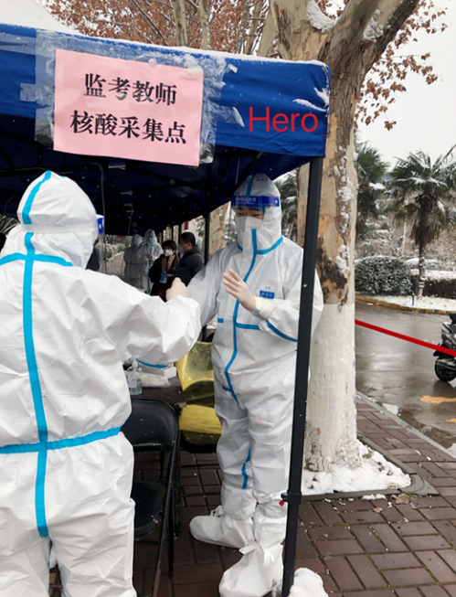 我们班李优安,付鹏飞,贺啸冲,赵俊,郭佳悦等同学作为志愿者参加了这次抗疫。他们各有分工:有在为制动的同学送餐和配送日用品的,有帮宿管阿姨收拾寝室垃圾的,有维护核酸检测现场秩序的,还有协助医护人员进行核酸检测的。大家每天都早出晚归,不辞辛苦,为的就是能够早点打赢这场抗疫攻坚战。