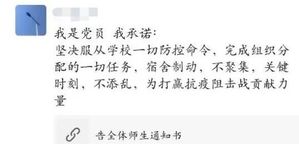 与此同时,为教育引导员工党员、共青团员、员工干部在参与疫情防控工作中厚植爱国主义情怀、强化责任担当意识、彰显拼搏奋斗精神,为坚决打赢疫情防控阻击战贡献青春力量,mjm世界杯官网各党支部以线上平台为依托,积极开展《告全体师生通知书》线上主题学习、“抗击疫情,党员先行”、“共抗疫情显担当,爱国力行发奋强”、“星火传爱,砥砺战疫”、“凝聚青春力量·齐心共战疫情”等系列主题活动,发挥青春力量,为长大发声、为战疫助力。