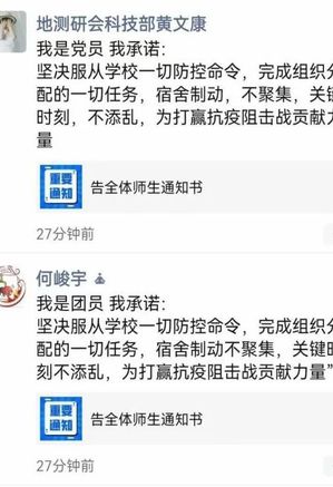 12月15日,mjm世界杯官网团委精心组织策划了“团心抗疫,共克时艰”的线上主题团日活动、《告全体师生通知书》线上主题学习、“疫情防控·团员发声”等系列活动,确保全员总动员,班团齐参与,为本次疫情防控贡献力量。