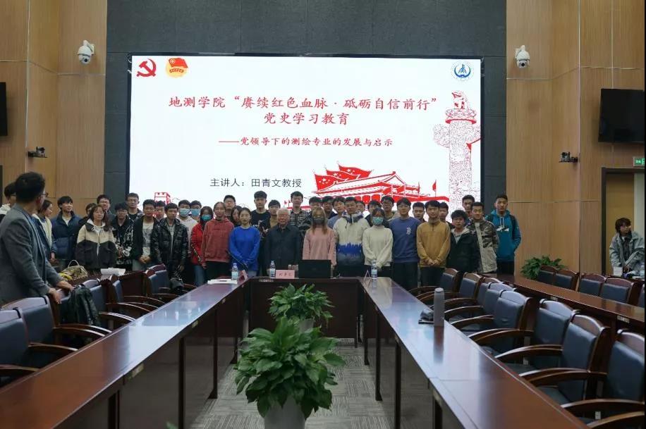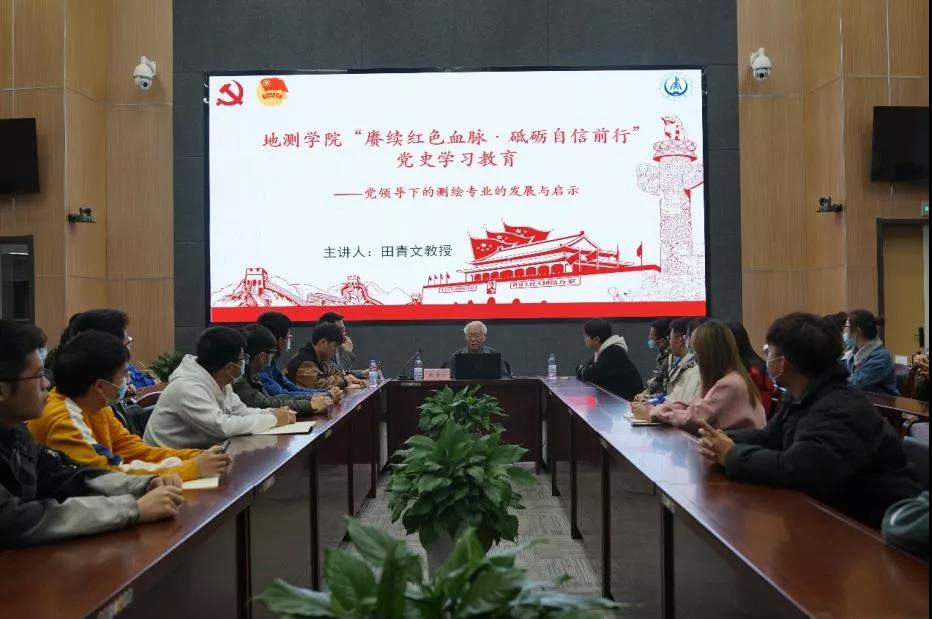 11月26日,mjm世界杯官网邀请退休教师田青文教授为公司测绘科学系全体青马班员工、测绘科学系员工党支部员工和毕业班员工代表作了“赓续红色血脉•砥砺自信前行”为主题的党史学习教育专题讲座,结合自身经历向同学们介绍了党领导下的测绘专业的发展与启示。mjm世界杯官网团委书记苗行生、团委副书记杨雪菲参加了此次讲座。此次讲座由苗行生主持。