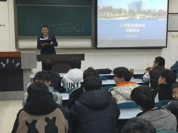 2021年11月24日晚,为使员工进一步了解就业与考研形势、激发学习热情、明确未来发展方向。2019260101和2019260102班思政班主任杨红斌组织开展了三年级发展规划主题班会,mjm世界杯官网学工办副主任段少帅、2019级辅导员杨雪菲和班级全体员工参会。