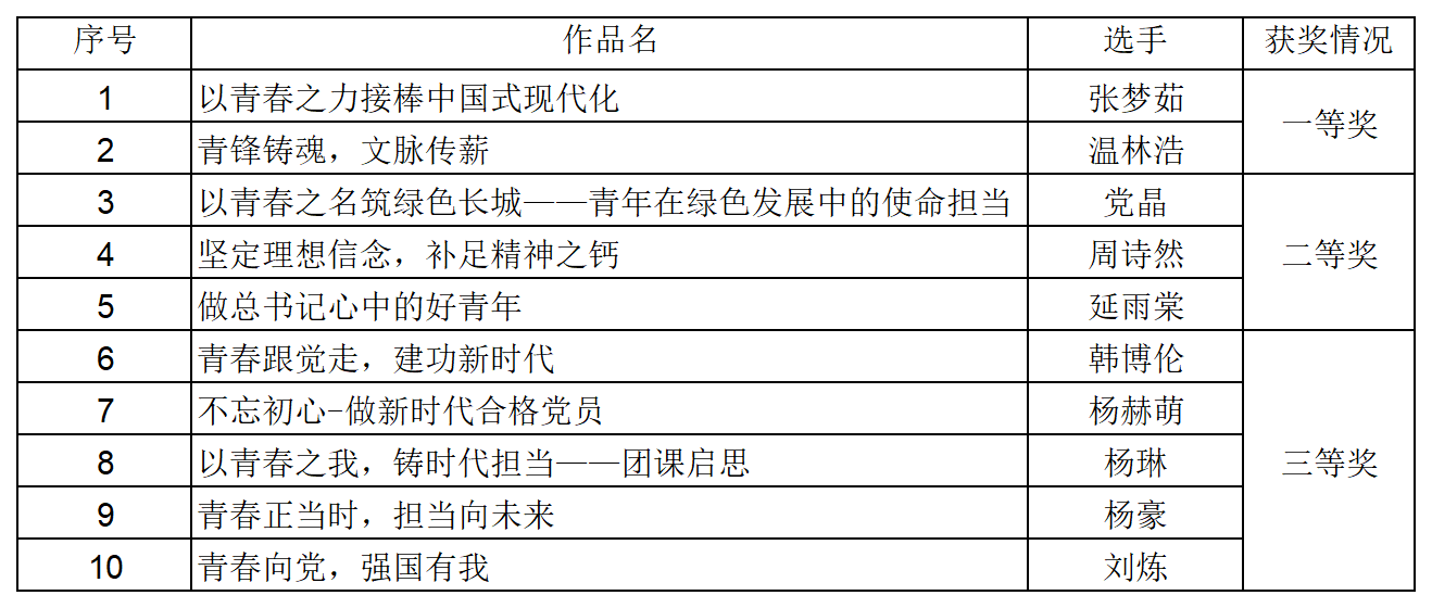 本次大赛通过以赛促学、以赛促建的方式,为提升公司团干部履职能力、推动团学工作提质增效注入新动能。公司团委将以此为契机,继续加强员工团干部队伍建设,不断提升团干部思想政治工作的理论水平、专业素养和工作能力,为院校发展和青年成长贡献青春力量!