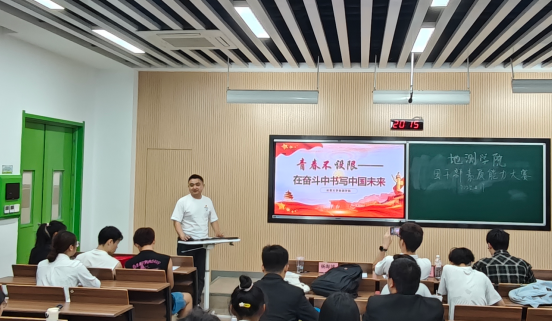 思政课展演结束,杨海城以《青春不设限——在奋斗中书写中国未来》为主题讲授专题团课。他从习近平总书记的重要讲话切入,从三个角度引出青年时代奋斗的三个主题,他强调青年人要在青年时期追逐青春理想;释放青春活力和奉献无悔青春;指出青年人要心怀国之大者、激扬时代风帆和谱写人生华章;希望各位青年要牢记总书记嘱托,保持永不懈怠的精神状态、永不停止的前进姿态,以奋斗之青春,塑造明日之中国。
