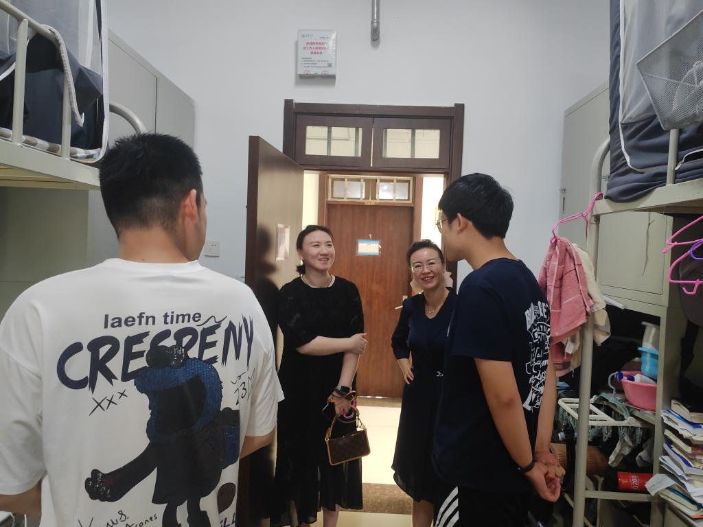 走访过程中,潘迎仔细查看了宿舍环境,叮嘱同学们要保持宿舍整洁卫生,做好个人内务整理,营造良好的生活环境,并仔细检查宿舍用电、消防等安全隐患,提醒同学们离校前务必关闭电源、锁好门窗,妥善保管个人贵重物品。