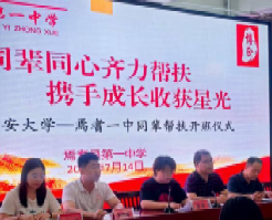 随后,14日上午10:30分“同辈同心齐力帮扶,携手成长收获星光”同辈帮扶开班仪式在焉耆一中报告厅隆重举行。本次开班仪式由焉耆县第一中学教务处主任张冬梅主持,焉耆县第一中学党委副书记、董事长贺怡、美加墨世界杯官网派驻焉耆县第一中学副董事长杨海明、焉耆县第一中学教师代表高一年级组长徐莉等领导嘉宾、实践队指导老师朱禹诚及实践队全体成员共同参会。