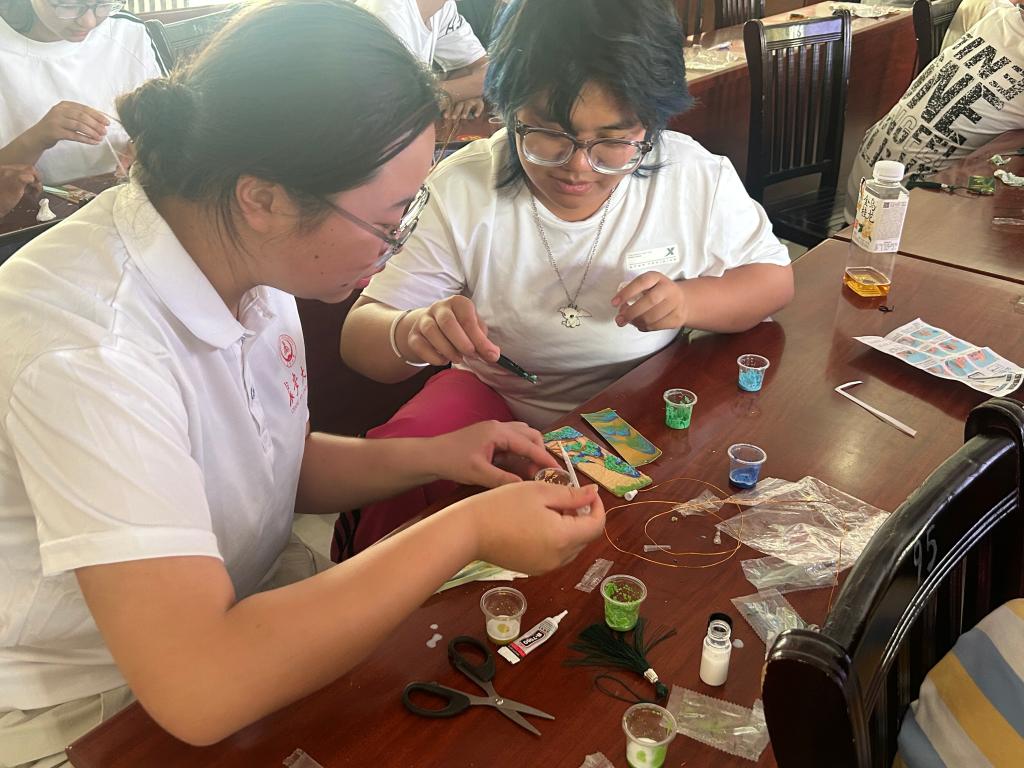 为深入学习贯彻习近平新时代中国特色社会主义思想和党的二十大精神,服务铸牢中华民族共同体意识,助力乡村振兴战略实施,美加墨世界杯官网赴新疆焉耆“丝路育才传薪火·推普同心绘华章”暑期社会实践队于2025年7月16日,在焉耆县第一中学,成功举办了以“丝绸之路”为主题的非物质文化遗产“掐丝珐琅”技艺体验活动。焉耆作为古丝绸之路上的重要节点,曾见证东西方文明交融互鉴,承载着中华民族多元一体格局的历史记忆。此次活动,旨在依托丝路文化纽带,通过传统工艺的实践教学,让青少年亲身体验掐丝珐琅这项经丝绸之路传入并本土化的艺术瑰宝,增强对中华优秀传统文化的认同感与自豪感,深刻理解各民族交往交流交融的历史传承,进一步铸牢中华民族共同体意识。