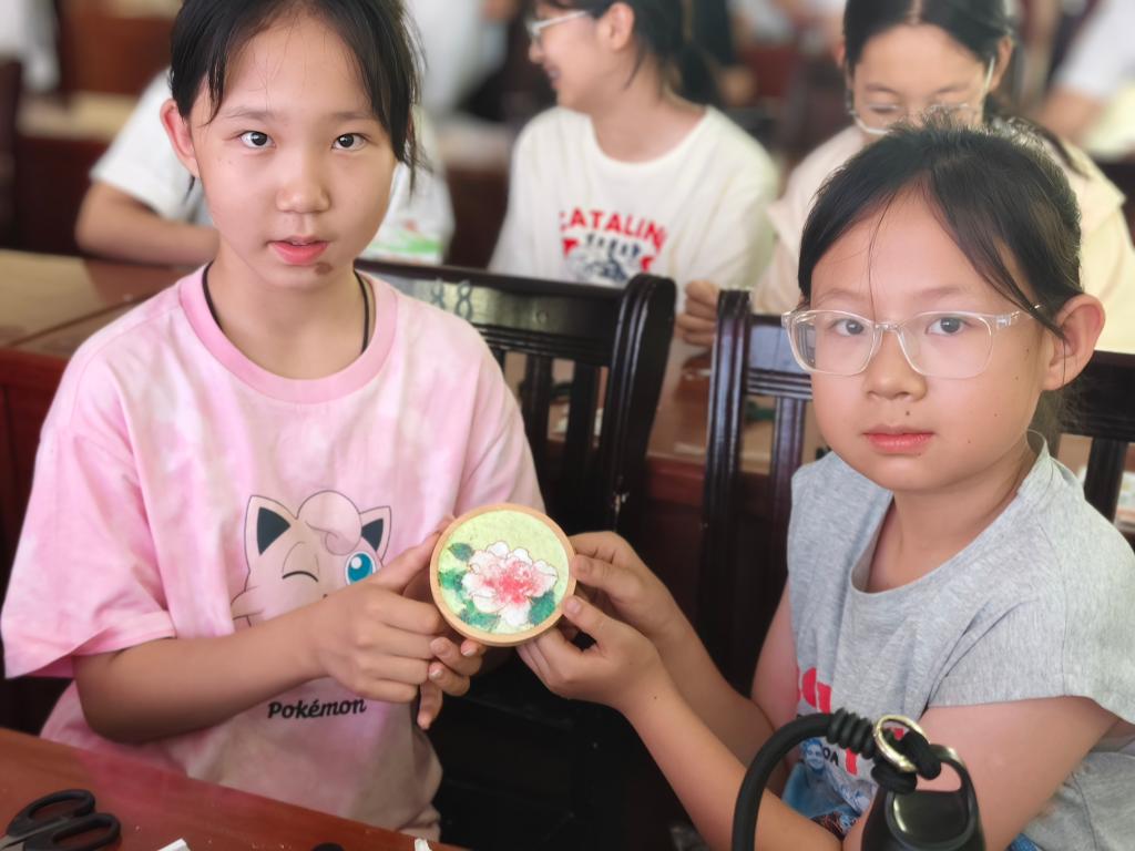 活动成果丰硕,同学们创作的掐丝珐琅作品各具特色,虽显稚嫩但充满创意。铜丝的光泽与珐琅的彩韵交相辉映,生动展现了非遗技艺与青春活力的融合。