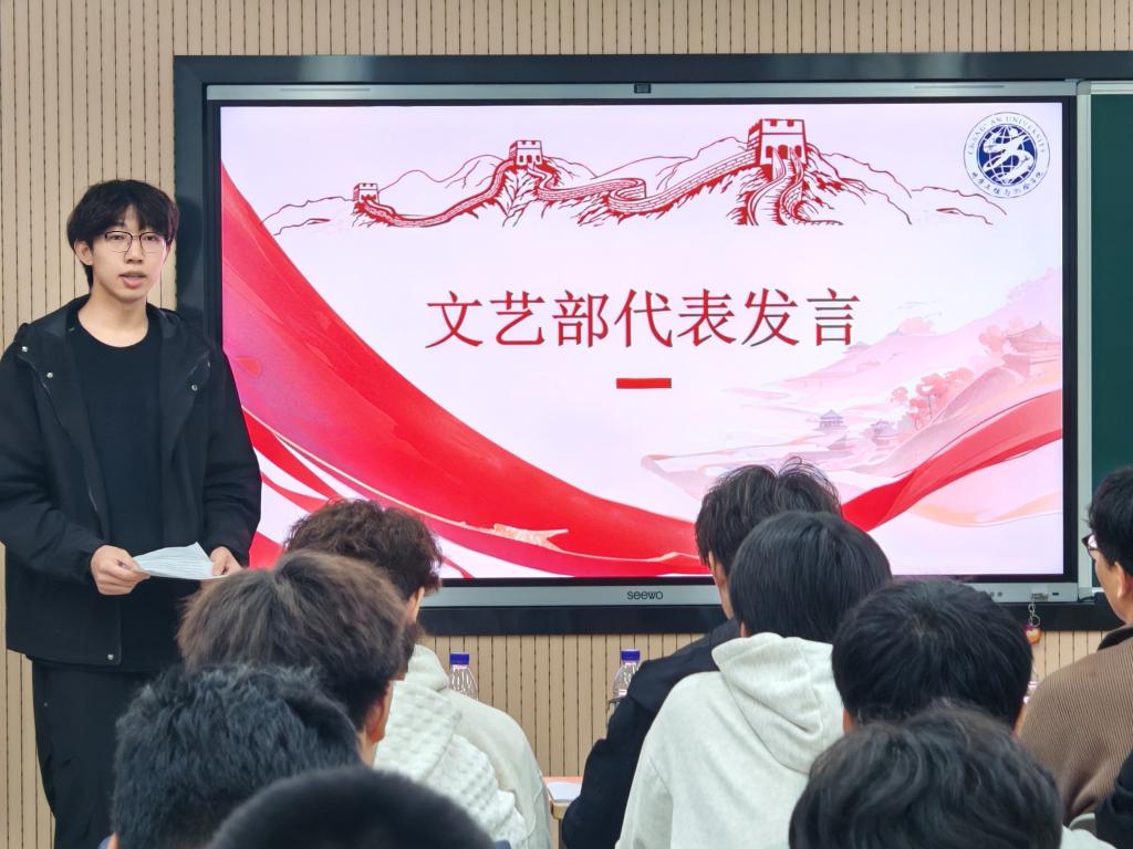 各部门负责人随后依次发言,明确部门职责与近期工作重点。体育部部长宋润丰强调做好赛事组织、裁判协助及后勤保障工作,确保赛事顺利推进。文艺部部长杨文康围绕“新生才艺大赛”讲述要求与流程,鼓励部员加入节目编排团队,为活动注入创意活力;宣传部部长乔嘉栋从活动宣传,新闻稿材料输出,紧跟活动进程三方面,鼓励部员积极贡献宣传创意,提升文体协会的影响力。