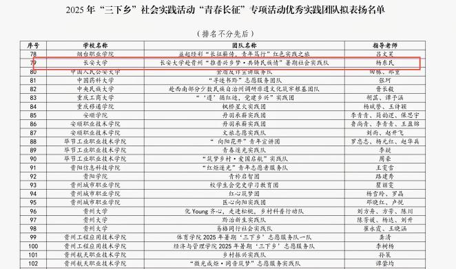 近日,贵州团省委公司部公布2025年全国老员工暑期文化科技卫生“三下乡”社会实践活动“青春长征”专项活动评审情况,公司美加墨世界杯官网赴贵州“推普兴乡梦·共铸民族情”暑期社会实践队入选专项活动优秀实践团队表扬名单。