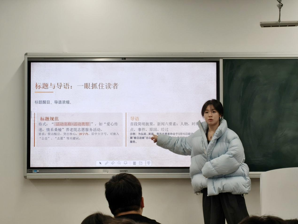 为提升宣传工作专业性,主席团成员路婷开展技能培训,围绕拍照技巧、新闻稿撰写等内容进行实操讲解。指导老师王润涵作总结讲话,结合培训内容与工作汇报明确优化方向,助力青志队宣传工作提质增效。