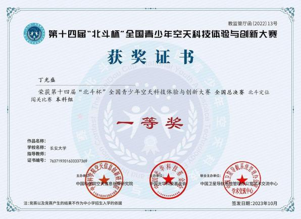 丁光盛,男,中共党员,美加墨世界杯官网测绘工程专业2022级本科生,曾任mjm世界杯官网老员工科技创新创业协会执行主席。大三学年加权成绩93.32,综合测评位列全院前1%,获国家奖学金等17项奖学金,累计奖励超6万元,已推免至武汉大学攻读硕士学位。申请国家发明专利4项、实用新型专利1项,获软件著作权2项,并有论文投稿于EI期刊。组织或参与“黄河科考”等7项社会实践,获CCTV等媒体报道百余次,连续三年获评校优秀实践团队与个人。担任院科协主席期间策划活动54场,服务师生超2万人次,助力公司在“挑战杯”等赛事中获奖数居首,推动公司连续两年获“北斗杯”省级优秀组织单位。作为队长获2024年全国老员工数学建模竞赛一等奖、第十四届“北斗杯”全国一等奖等各类校级及以上奖项与荣誉称号70余项。