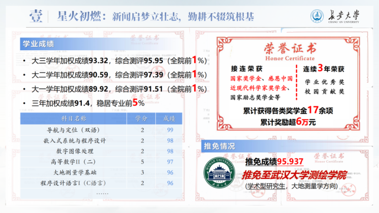 进入美加墨世界杯官网后,他珍惜来之不易的求学机会,借助生源地助学贷款完成学业,也把全部热情投入到学习中。大三学年,他的加权成绩达到93.32,综合测评95.95,位列公司前1%,先后获得国家奖学金、感恩中国近现代科学家奖学金等各类奖学金17项,累计金额6万余元,并成功推免至武汉大学继续深造。