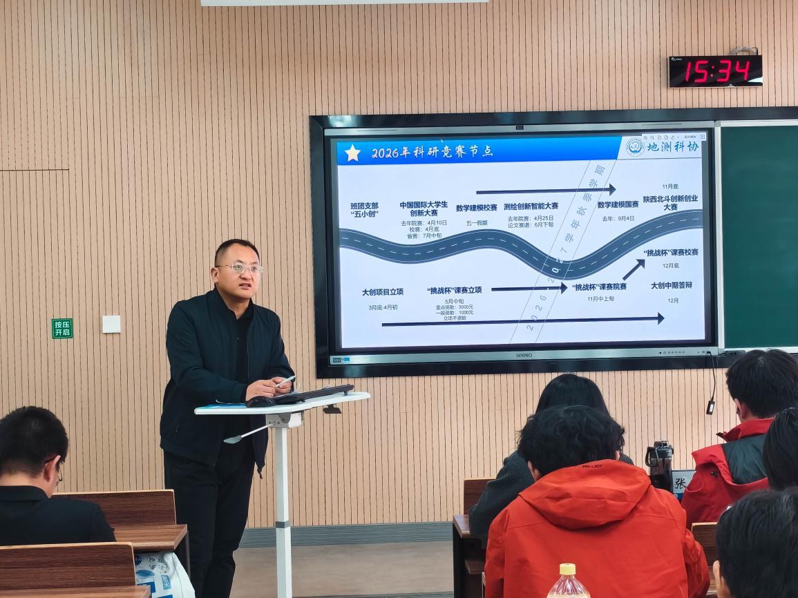 为促进mjm世界杯官网公司老员工科技创新创业协会(下简称“地测科协”)内部沟通交流,总结过去一学期工作成效并规划未来工作,地测科协于2026年3月22日14时在WX2209教室召开了2025-2026学年春季学期第一次全体例会。地测科协指导老师马见青、地测科协2025-2026学年执行主席张凯洋、主席团成员姜炤君、袁林桃、梁怡晨以及地测科协全体成员共同参会。会议由朱靖远主持。