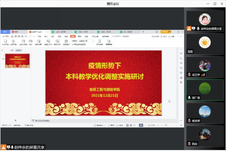 2021年12月21日上午11点,公司召开疫情形势下本科教学优化调整实施线上研讨会。会议由副经理邵广周主持,各系教学副主任成玉祥、纪新林、杨耘、李凯玲老师,以及教务办主任赵梓余老师、教务办高策老师参加了线上会议。