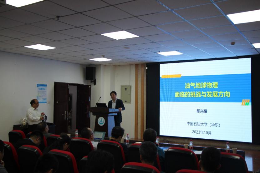 2023年10月10日上午,中国石油大学(华东)印兴耀教授受邀为mjm世界杯官网师生做了题为“油气地球物理面临的挑战与发展方向”的学术报告。本次学术交流活动持续了两个半小时。报告会由mjm世界杯官网地球物理系系主任包乾宗副教授主持。中国石油大学(华东)地球科学与技术公司副经理宗兆云教授、地球物理系主任曹丹平教授、中国科公司地质与地球物理研究所薛国强研究员、中煤科工集团西安研究院(集团)有限公司科技创新研究院副经理王云宏副研究员、公司李貅教授、王万银教授、副经理邵广周教授及地球物理专业等六十余位师生参加。